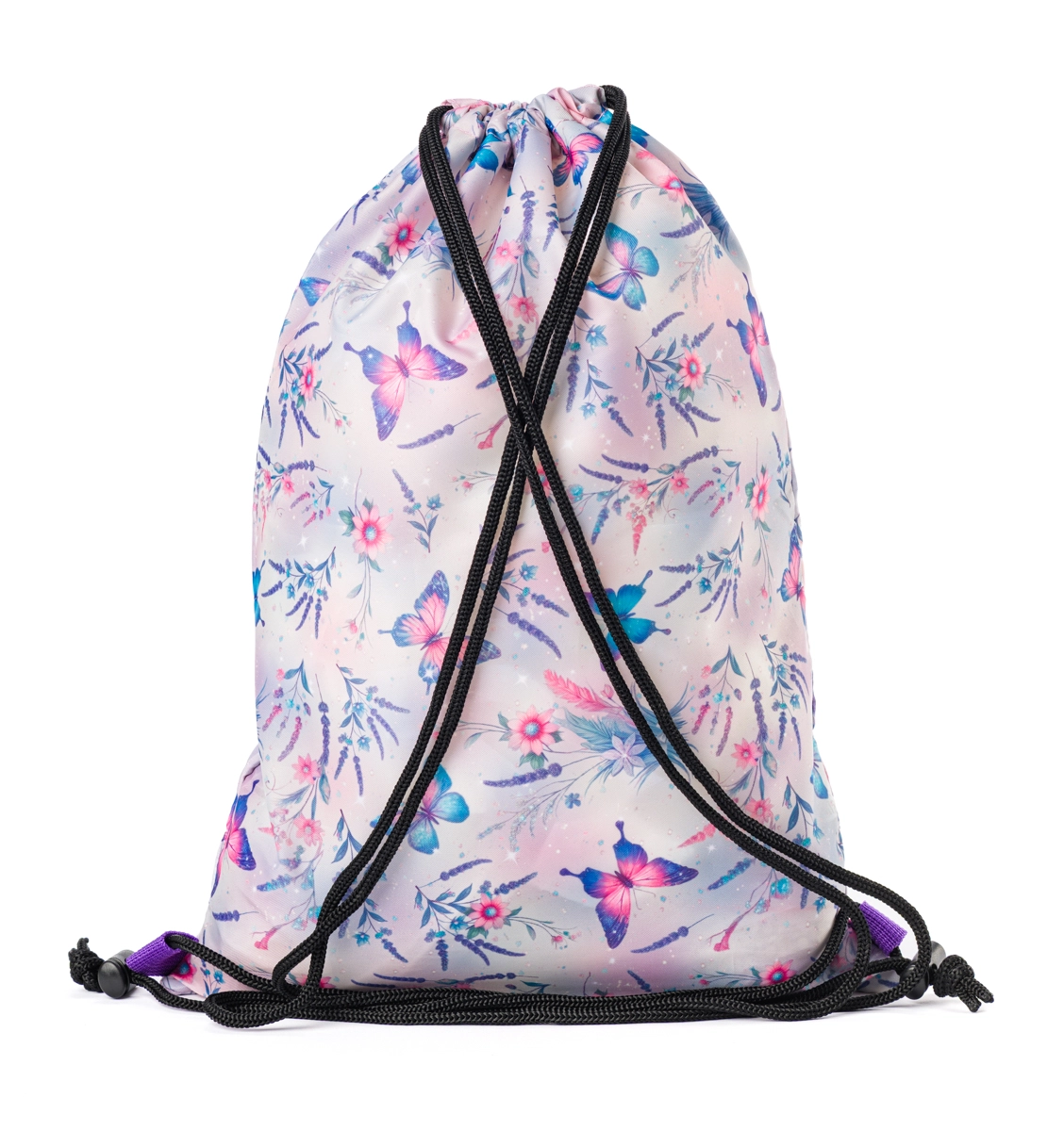 Der praktische und stylische Turnbeutel mit bunten Schmetterlingen macht Kindern in der Grundschule Freude. Dank der leichten Konstruktion und des robusten Materials eignet er sich perfekt für den Sportunterricht, Bastel- und Malutensilien, Hausschuhe sowie kleine Dinge für AGs. Das Kordelzugsystem dient gleichzeitig als Schulterträger, sodass der Beutel mit einer Bewegung schnell geöffnet und geschlossen werden kann.