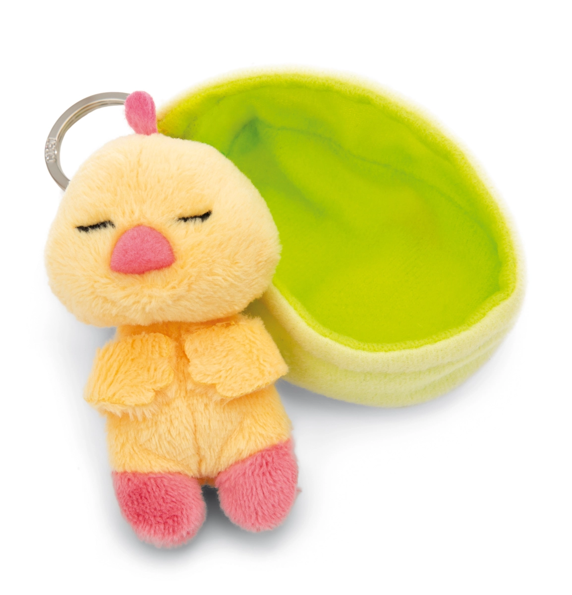 Das kleine schlafende Küken aus gelbem, weichem Plüsch versteckt sich in einem kuscheligen, hellgrünen Etui. Ein ideales kleines Geschenk, Glücksbringer und stylisches Accessoire für Schlüssel, Rucksack, Schultasche oder Geldbeutel. Durch die kompakte Größe und den sicheren Metallring ist das Befestigen schnell und zuverlässig.