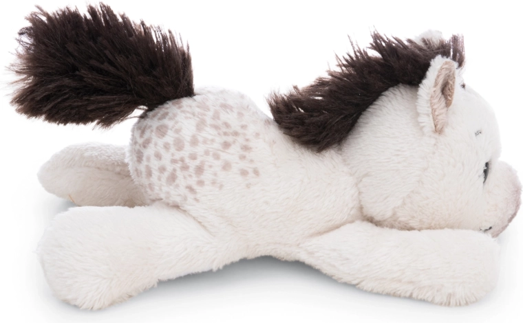 Kuschelig weiches weißes Fell mit dunkler Mähne und Schweif, gestickte Augen und Details für sicheres Kuscheln und Dekorieren.