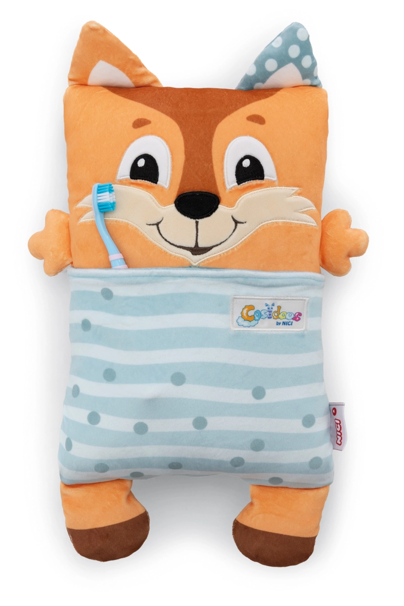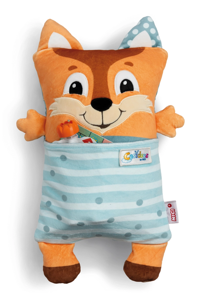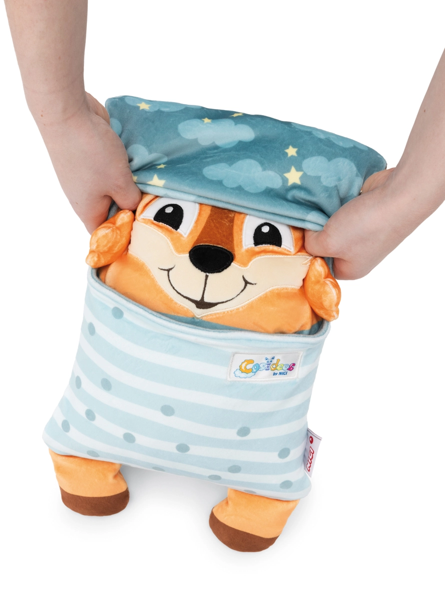 Der niedliche NICI Cosidoos Fuchs ist ein 2-in-1-Plüschtier, das sich mit einer Bewegung vom fröhlichen Tagesbegleiter in ein beruhigendes Schlafkissen verwandeln lässt. Das beidseitige Design hilft Kindern, den Rhythmus von Tag und Nacht wahrzunehmen, weiche Taschen für Kleinigkeiten bewahren kleine Schätze auf und der superweiche NICI-Plüsch sorgt für maximalen Komfort. Ideal ab 12 Monaten.