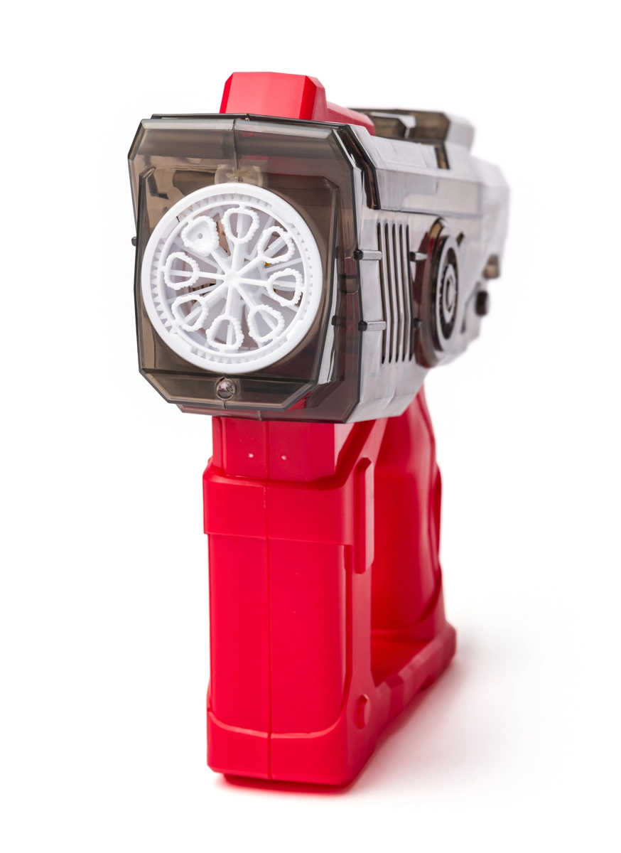 Das Gerät verfügt über einen ergonomischen Griff für bequemes Halten, einen einfachen Auslöser und ein transparentes Gehäuse, das den inneren Mechanismus sichtbar macht. Im Lieferumfang finden Sie 55 ml Lösung, und der Blaster ist in wenigen Augenblicken einsatzbereit – einfach 4× AA-Batterien einlegen (nicht enthalten). Das Produkt wird in Open-Box-Verpackung und in einem zufälligen Mix aus zwei Farben (Blau/Rot) geliefert.