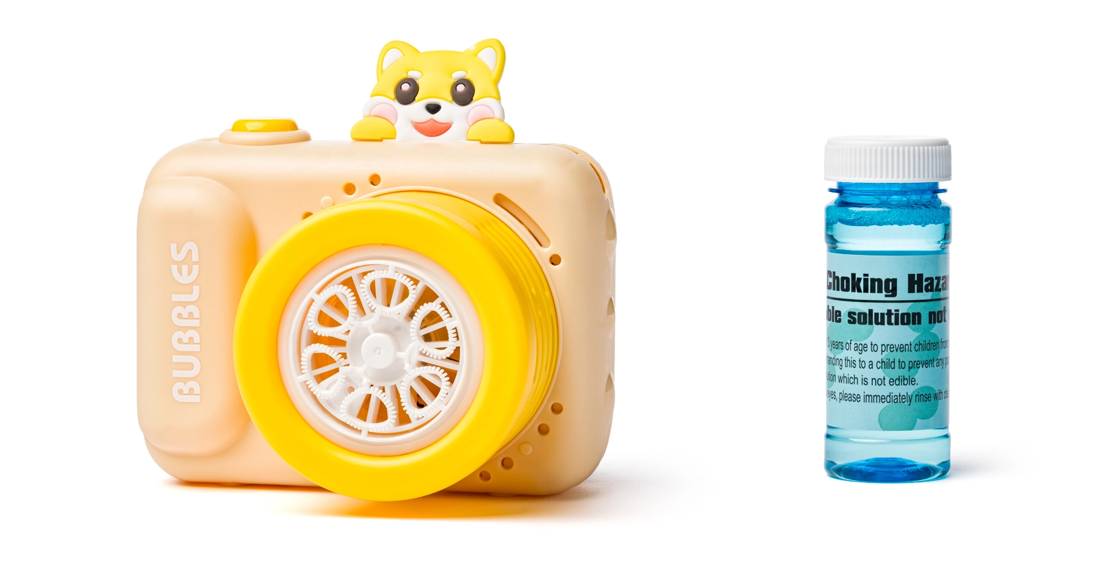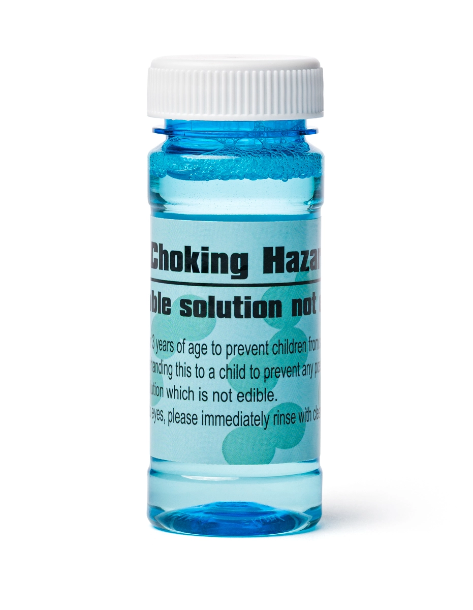 Enthalten ist eine 50-ml-Flasche Seifenblasenlösung mit wiederverschließbarem Deckel – einfaches Nachfüllen und sicheres Aufbewahren ohne Auslaufen.
