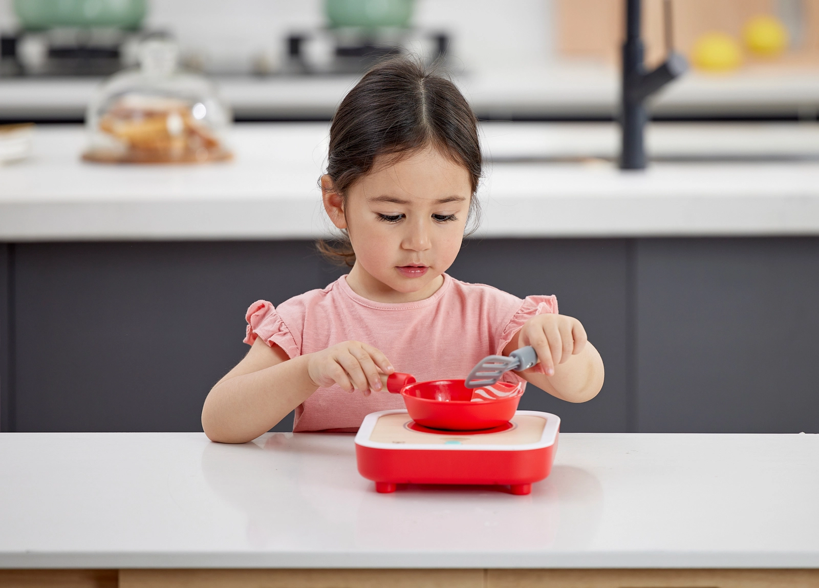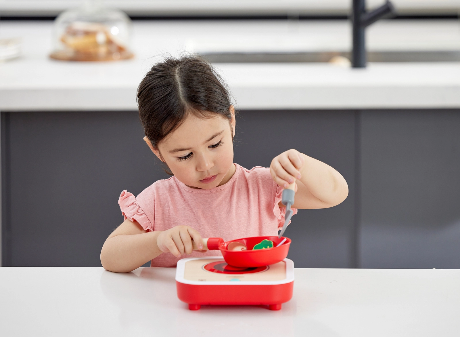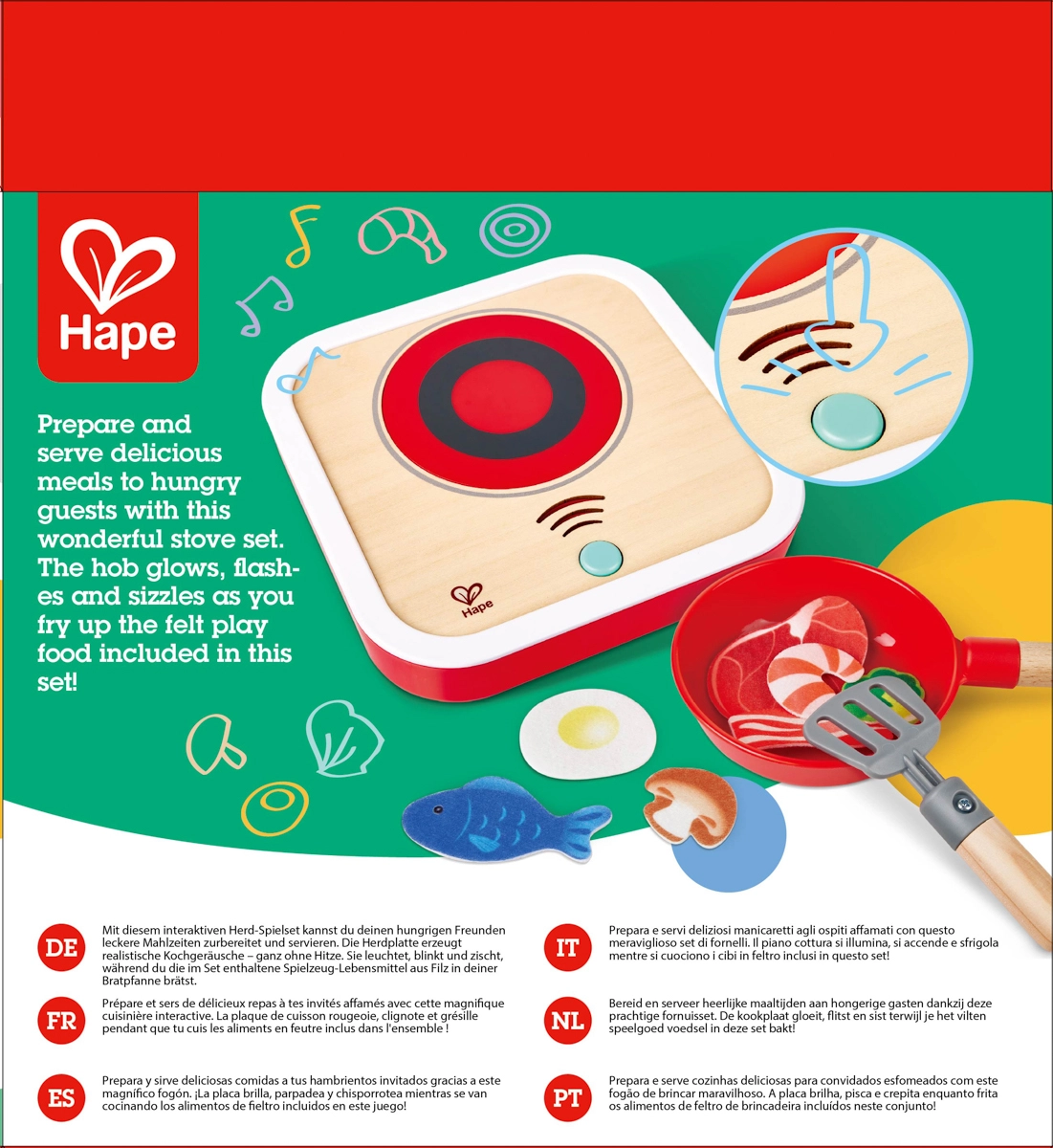 Schenken Sie Kindern ein realistisches Kocherlebnis mit dem robusten Hape Holzherd. Mit nur einem Tastendruck starten blinkendes Licht und authentisches Zischen, die die Atmosphäre einer echten Küche schaffen. Das Set ist ideal für das selbstständige Spiel oder gemeinsames Kochen mit den Eltern.
