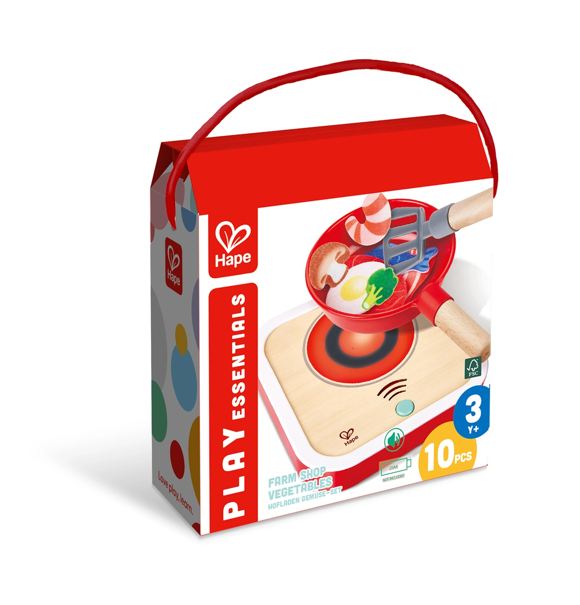 Im Lieferumfang ist hochwertiges Zubehör enthalten: Pfanne, Pfannenwender und 7 Filzlebensmittel (Steak, Speck, Garnele, Fisch, Ei, Pilz, Brokkoli). Dank der stabilen Holzkonstruktion hält es intensivem Spiel lange stand und fördert Kreativität, Kommunikation und soziale Kompetenzen.