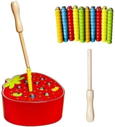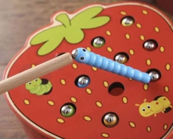 Ein unterhaltsames Holzspiel in Form einer leckeren Erdbeere, das die Feinmotorik und Konzentration fördert. Kinder ziehen mithilfe eines Magnetstäbchens Würmchen aus den Öffnungen und stecken sie wieder hinein. Das Spiel besteht aus sicheren Materialien und hat leuchtende Farben, die Kinder zum Spielen und Lernen motivieren. Eine tolle Wahl zur Förderung von Hand-Auge-Koordination, Kreativität und Geduld.