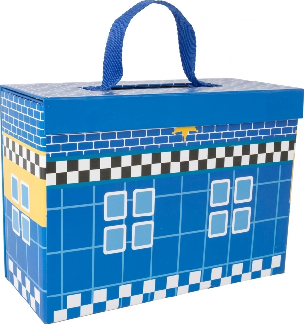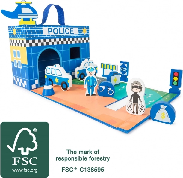 Öffne den Koffer, baue die Polizeistation auf und ab ins Abenteuer! Dieses hochwertige Set aus 100 % FSC-Holz bietet Kindern vielfältige Spielmöglichkeiten: von der Verfolgung eines Diebes bis zum sicheren Verstauen aller Teile zurück in den Koffer mit Griff. Ideal zum Spielen zu Hause und auf Reisen.