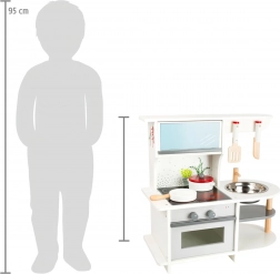 Dank der robusten Konstruktion aus Holz und Metall ist diese Küche langlebig und bietet eine Vielzahl interaktiver Erlebnisse. Sie wird mit einer bebilderten Anleitung zur Montage und einem grundlegenden Zubehörset geliefert.