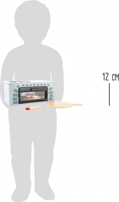 Der Holz-Pizzaofen mit Zubehör ist ideal für kleine Köche, die Spaß beim Backen wie Erwachsene haben möchten. Dieses Spielzeug fördert feinmotorische Fähigkeiten und unterstützt aktives Rollenspiel. Die Pizza besteht aus Holzteilen, die mit einem Klettverschluss verbunden sind, was eine einfache Änderung der Zutaten nach der Fantasie des Kindes ermöglicht.