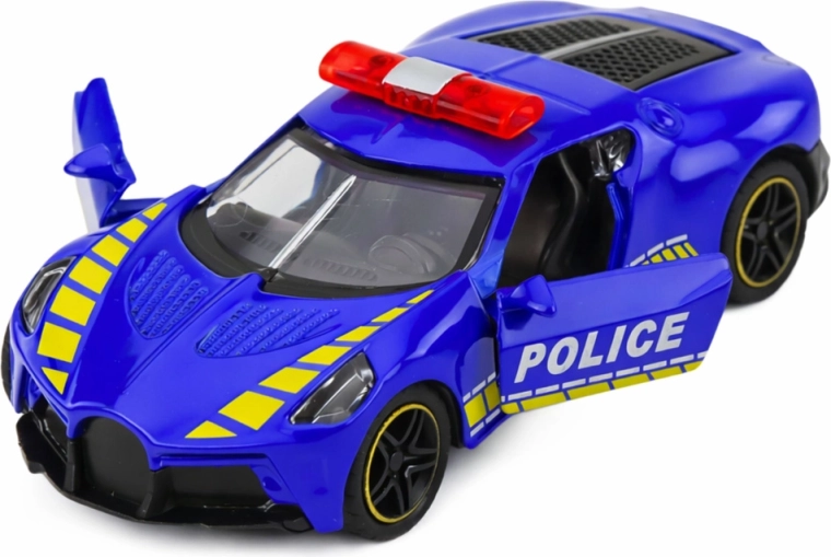 Der stylische Polizei-Sportwagen begeistert kleine Fans schneller Autos sowie Licht und Sirenen. Dank der realistischen Verarbeitung, transparenter Fenster und des sportlichen Designs macht er beim Spielen ebenso Eindruck wie im Regal junger Sammler.