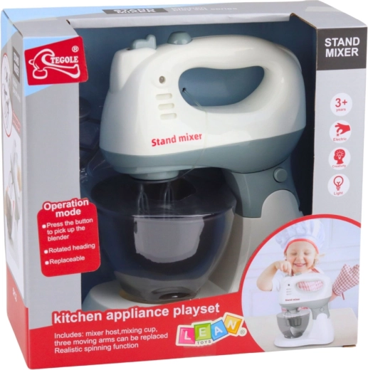 Dieser Kindermixer für die Küche sieht aus wie ein echtes Gerät: Er hat einen stabilen Standfuß, eine transparente Schüssel und einen Kopf, der sich leicht abnehmen und als Handmixer verwenden lässt. Dank der drehenden Aufsatzenden und der aufleuchtenden Kontrolllampe wirkt das Spiel noch realistischer und Kinder können Erwachsene in der Küche sicher nachahmen.