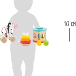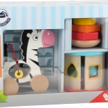 Dieses Spielset ist fFCr die kleinsten Kinder konzipiert und bietet vielfE4ltige AktivitE4ten, die die motorische Entwicklung fF6rdern. Jedes Spielzeug im Set ist sorgfE4ltig aus Holz gefertigt und hat ein attraktives, farbenfrohes Design, das Kinder zum Spielen animiert: