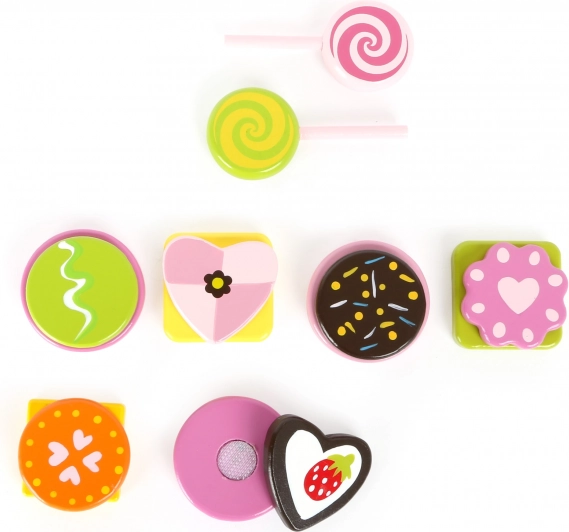 Entdecken Sie die Magie des süßen Spielens mit dem farbenfrohen Set aus hölzernen Leckereien von SMALL FOOT. Lutscher, Kekse und Pralinen bestehen aus 100% zertifiziertem FSC-Holz und können dank stabiler Klettverschlüsse von Kindern immer wieder geteilt und verbunden werden. Realistische Accessoires verwandeln jede Kinderküche in eine kreative Konditorei.
