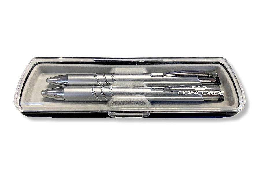 Das Geschenkset Concorde Adriana ist eine praktische und stilvolle Wahl für Beruf, Studium und den privaten Gebrauch. Das silberne Design wirkt elegant, während das ergonomisch geformte Kunststoffgehäuse und der Metallclip eine bequeme Handhabung und sicheren Halt in der Tasche oder im Notizbuch gewährleisten.