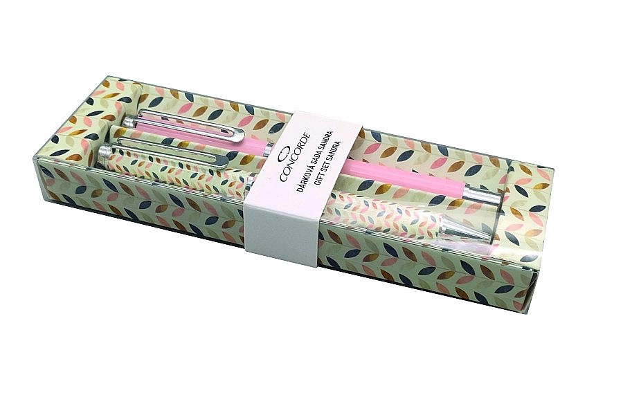 Gönnen Sie sich Stil und Zuverlässigkeit mit dem Geschenkset CONCORDE Sandra. Der Kugelschreiber mit Drehmechanik ermöglicht ein schnelles und bequemes Aus- und Einfahren der Spitze, während der Rollerball im wunderschönen Roséton einen sanften, gleichmäßigen Strich ohne Anstrengung bietet. Das Vollmetallgehäuse und die Metallclips verleihen dem Set Robustheit und einen Premium-Look – ideal fürs Büro oder die Handtasche.