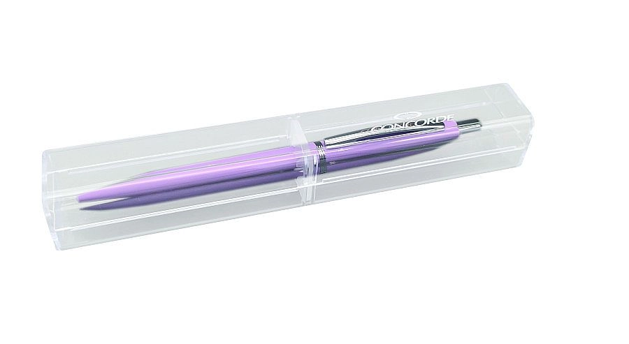 Entdecken Sie Stil und Komfort beim Schreiben mit dem Kugelschreiber Concorde Corola in pastelllila Ausführung. Dank des ergonomisch gummierten Schafts liegt der Stift hervorragend in der Hand und der Druckmechanismus ermöglicht eine schnelle und praktische Nutzung überall.