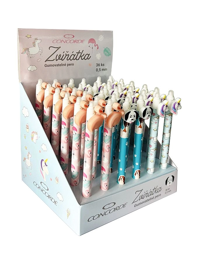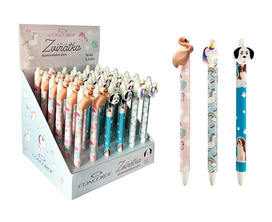 Der radierbare Stift CONCORDE Tiermotive verbindet den Schreibkomfort eines Gelstifts mit der Möglichkeit fehlerfreier Korrekturen. Geschriebenen Text radieren Sie einfach mit dem am Stiftende angebrachten Radiergummi aus – ohne Fussel und ohne das Papier zu beschädigen. Dank der feinen 0,5-mm-Spitze eignet er sich für Notizen, Schulhefte und Planer.