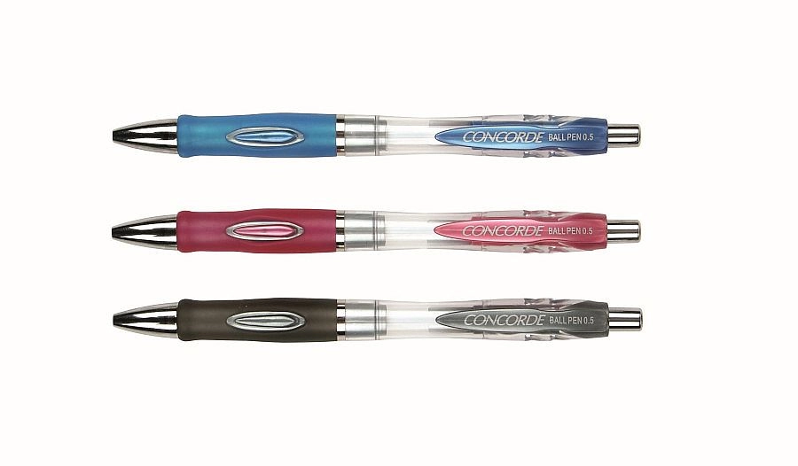 Der ergonomische, gummierte Griff erhöht den Komfort bei langem Schreiben und der Klick-Mechanismus ermöglicht ein schnelles und zuverlässiges Aus- und Einfahren der Spitze ohne Kappenverlust. Der Stift wird in einem attraktiven Mix metallischer Farben (blau, grau, rosa) geliefert und beinhaltet eine blaue Ersatzmine Extra für eine längere Lebensdauer.