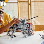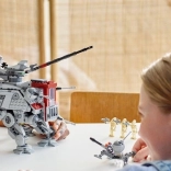 Entdecken Sie die Aufregung der Schlacht um Utapau mit dem spektakulären LEGO Star Wars AT-TE Baukasten. Er besteht aus 1082 Teilen und enthält Figuren wie Kommandant Cody, einen Artillerietrupp und drei Klonsoldaten des 212. Bataillons, die gegen drei Droiden und einen Spinnendroiden kämpfen.