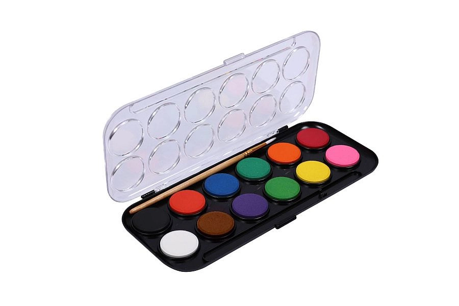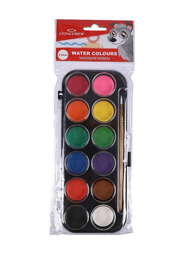 Entdecken Sie zuverlässige Wasserfarben für Schule und kreatives Gestalten zu Hause. Das CONCORDE-Set enthält 12 sorgfältig ausgewählte Farbtöne in einer praktischen Box, die die Farben schützt und dank des transparenten Deckels einen schnellen Überblick ermöglicht. Der große Durchmesser von 30 mm erleichtert die Arbeit für Kinder und Anfänger.