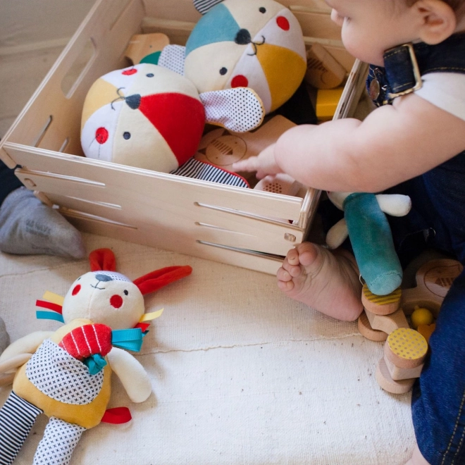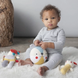Die weiche Textilrassel in Bärenform bietet Babys sanfte akustische Reize und ein sicheres, angenehmes Greifgefühl. Dank der organischen Materialien ist sie auch für empfindliche Haut geeignet und unterstützt die Entwicklung der Feinmotorik und des Sinneswahrnehmung.