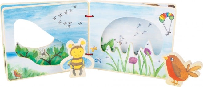 Dieses hochwertige Holzbuch SMALL FOOT ist für kleine Entdecker ab 12 Monaten konzipiert. Dank der farbenfrohen Illustrationen und der zwei Holzfiguren von Biene und Vogel lernen Kinder spielerisch Tiere und Pflanzen kennen. Praktische Klettverschlüsse ermöglichen es, die Figuren auf der Rückseite des Buches zu befestigen, sodass sie nicht verloren gehen.