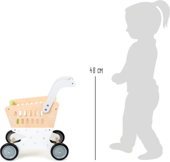 Schenken Sie Kindern ein authentisches Einkaufserlebnis. Der Kinder-Holzeinkaufswagen SMALL FOOT Trend vereint elegantes Design, Stabilität und sicheren Betrieb dank Gummirädern, die einen leisen und kultivierten Lauf auf unterschiedlichen Böden gewährleisten. Der geräumige Korb bietet problemlos Platz für Spielzeug, Plüschtiere und Zubehör für den Kinderladen.