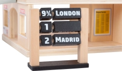 Entdecken Sie einen realistischen Bahnhof, der Fantasie, Rollenspiel und Feinmotorik fördert. Die robuste Konstruktion aus zertifiziertem FSC-Holz und durchdachte Details wie Fahrkartenautomat, Abfahrtstafel und kleiner Laden garantieren stundenlangen Spielspaß. Das offene Dach erschließt alle Spielbereiche und erleichtert das gemeinsame Spielen mehrerer Kinder.