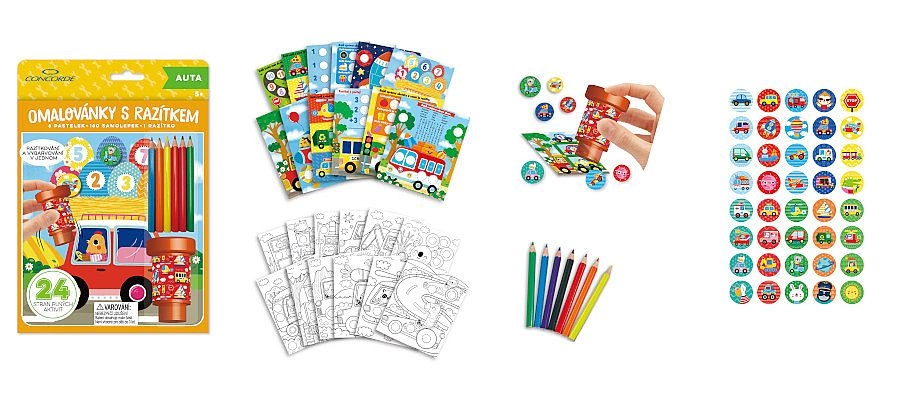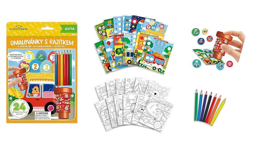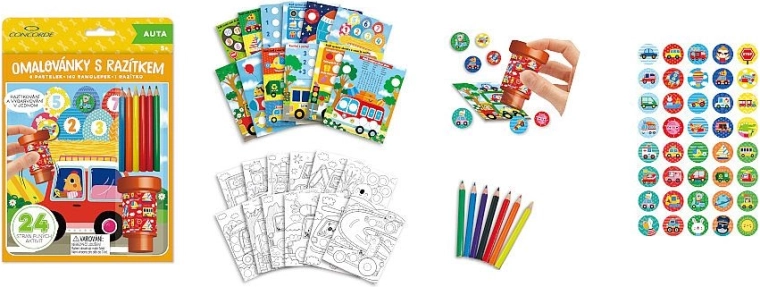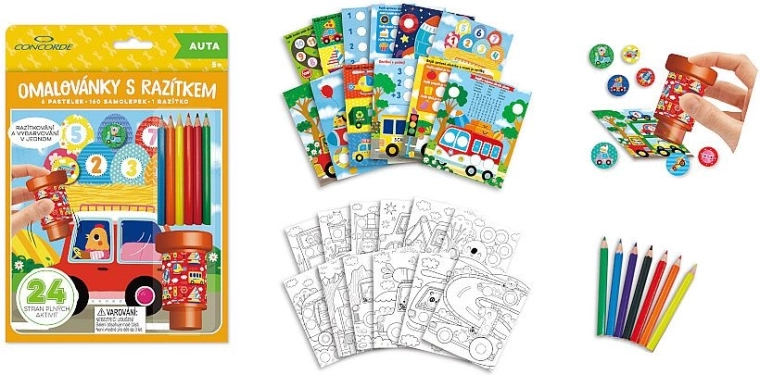 Dieses CONCORDE Malbuch-Set mit Stempel begeistert kleine Kreative und Autoliebhaber. Durch die Kombination aus Ausmalseiten, Aufgaben, Aufklebern und Stempel fördern Kinder ihre Feinmotorik, Kreativität und Fantasie.