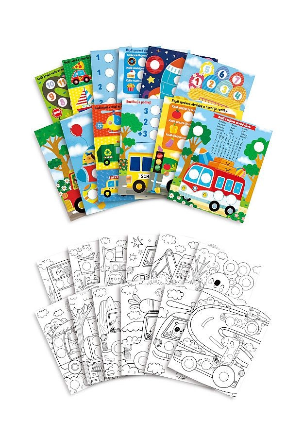 Enthalten sind 24 Seiten voller Spaß – 12 Seiten mit einfachen Aufgaben und 12 Seiten zum Ausmalen. Ergänzt wird das Paket durch 160 leicht ablösbare Aufkleber mit Automotiven, 1 Stempel für originelle Abdrucke und 6 farbige Buntstifte für sofortiges Kreativsein.