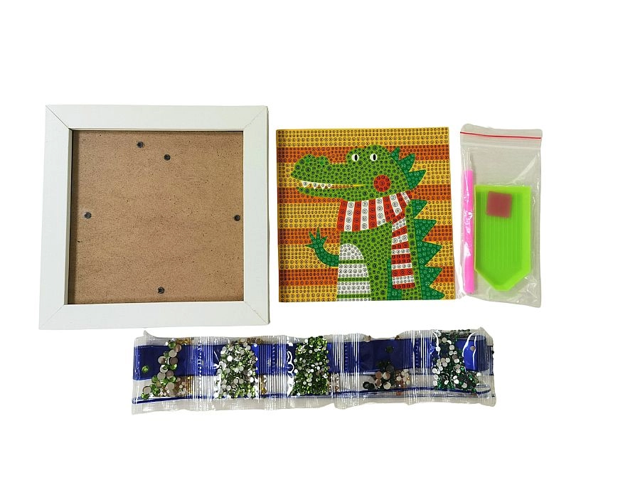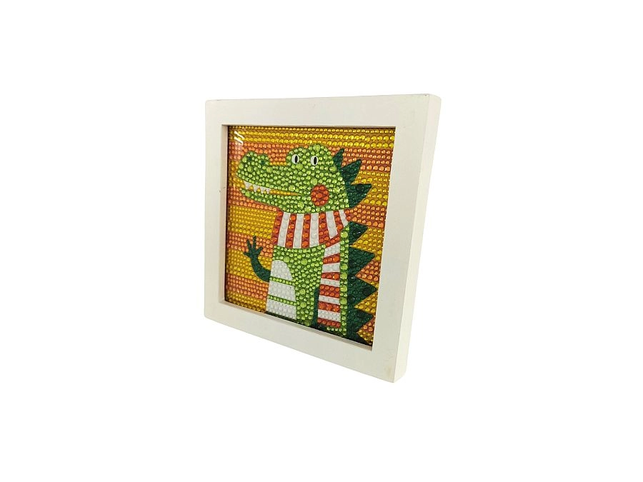 Dieses kreative Diamond-Painting-Set mit Krokodil-Motiv begeistert Kinder und Erwachsene gleichermaßen. Dank der farbigen Vorlage und der einfachen Anwendung der Diamanten mit Stift und Silikongel gelingt ein wunderschönes, glitzerndes Bild wirklich jedem. Das fertige Werk können Sie stolz im beiliegenden weißen Rahmen präsentieren.