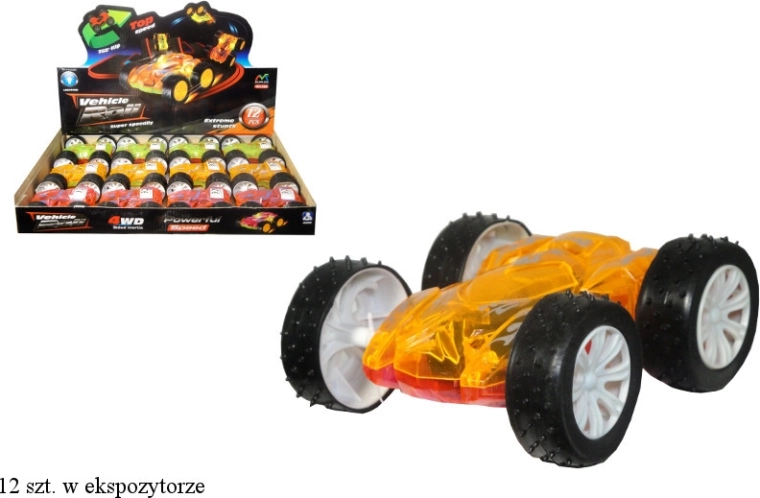 Entdecken Sie ein dynamisches Spielzeug, das nie langweilig wird. Das doppelseitige Stunt-Auto startet dank Reibungs- (Friction-) Antrieb ganz einfach ohne komplizierte Bedienung, führt 360°-Drehungen aus und begeistert mit farbigen Lichtern bei jeder Fahrt. Ideal zur Förderung der Motorik, Koordination und Fantasie von Kindern.
