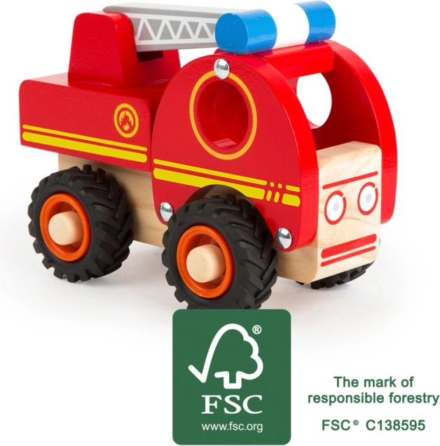 Dieses Holz-Feuerwehrauto ist ideal für kleine Fans von Rettungsaktionen. Hergestellt aus 100% FSC-zertifiziertem Holz mit beweglicher Leiter und leisen gummierten Rädern, die eine reibungslose Fahrt gewährleisten.