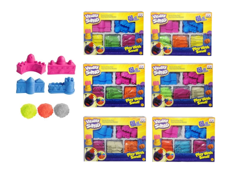 Das Set enthält drei leuchtende Sandfarben und praktische Formen, mit denen Kinder ihre eigene Burg und weitere originelle Bauwerke erschaffen. Das Spiel mit dem Sand fördert Konzentration, Kreativität und die Entwicklung der Feinmotorik – und das alles spielerisch zu Hause oder im Kindergarten.