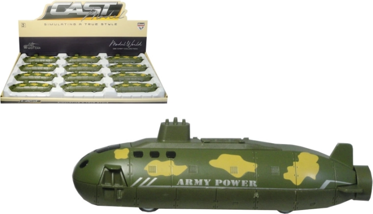 Dieses stylische Metall-U-Boot mit Rückziehantrieb ist das ideale kleine Spielzeug für Kinder, die Fahrzeuge und Bewegung lieben. Dank des einfachen Mechanismus genügt es, das U-Boot nach hinten zu ziehen – beim Loslassen fährt es von selbst los.