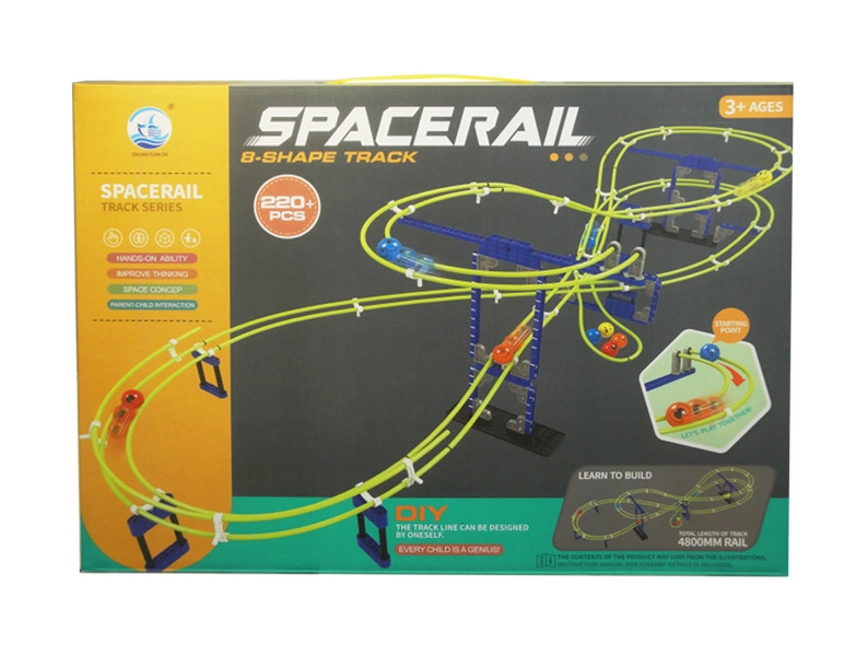 Diese zweistöckige Murmelbahn bringt Kindern Freude am Entdecken und Experimentieren. Dank des Baukastensystems können kleine Baumeister die Anordnung der Teile leicht verändern, verschiedene Strecken testen und beobachten, wie sich die Murmeln in einer dynamischen Fahrt in Form einer Acht bewegen.