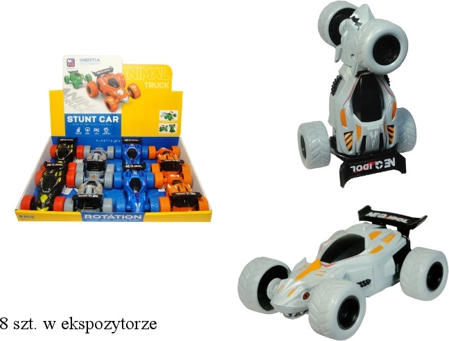 Starten Sie die Action mit einem Stuntauto, das dank seiner einzigartigen Konstruktion mit 360° drehbarer Vorderachse Überschläge und enge Kurven beherrscht. Der Friktions- (Schwung-)Antrieb sorgt für einen schnellen Start – einfach anschieben und loslassen. Ideal für Hausrennen und Stunt-Herausforderungen auf Boden oder Teppich.