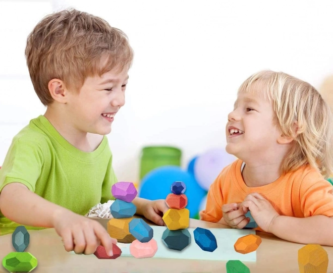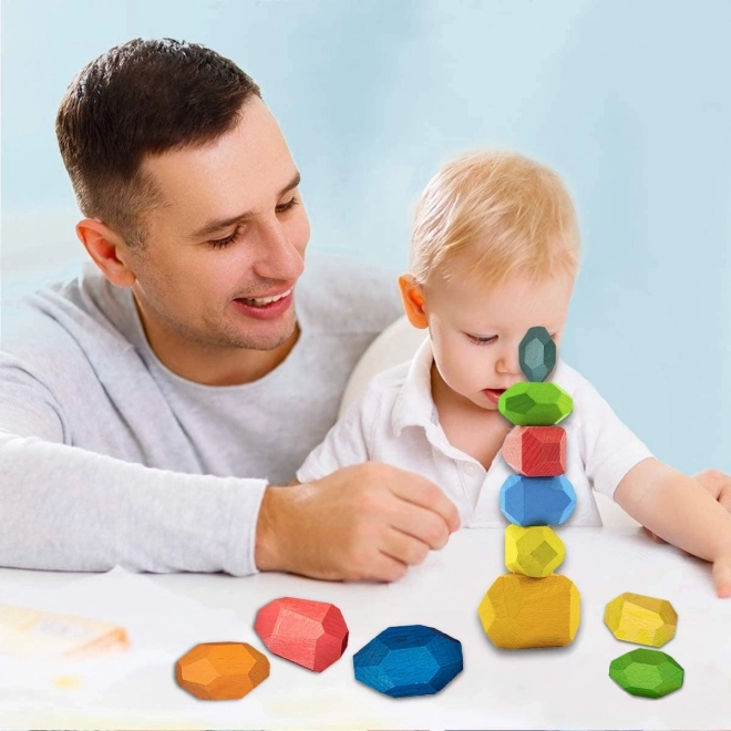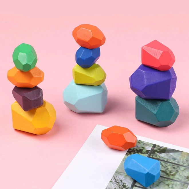Hölzerne Balance-Steine sind ein interessantes Spielzeug nicht nur für Kinder. Sie haben eine unregelmäßige Oberfläche, daher ist das Bauen eines Turms keine einfache Aufgabe.