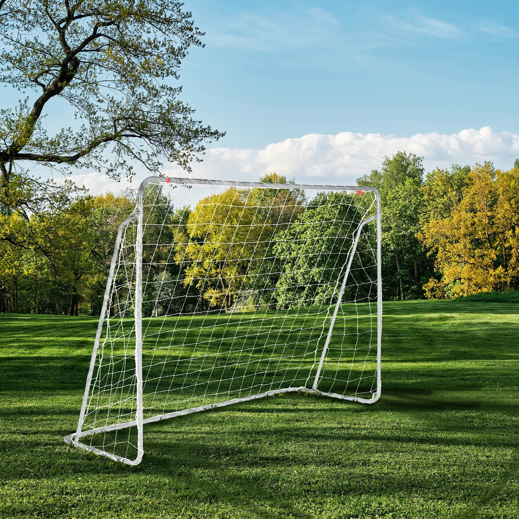 Zum Set gehören Erdankerstifte für eine sichere Verankerung und Clips, die das Netz fest an Ort und Stelle halten. Das Tor eignet sich hervorragend für das Heimtraining von Kindern, das Üben der Schussgenauigkeit und kleine Spiele im Garten.