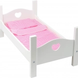 Dieses zauberhafte Holz-Bettchen, entworfen für Puppen oder Plüschtiere bis zu einer Größe von 45 cm, ist die ideale Ergänzung für jedes Kinder-Spielzimmer. Dank der stabilen Konstruktion und liebevollen Details wie herzförmigen Ausschnitten an den Stirnseiten bietet es hochwertigen, langanhaltenden Spielspaß. Das praktische Set umfasst Kissen, Decke und Laken mit zartem rosa Muster, das dem Spiel zusätzliche Realitätsnähe verleiht. Das Bettchen ist aus hochwertigem Holz gefertigt und sorgt so für Sicherheit und Widerstandsfähigkeit bei allen Spielaktivitäten.