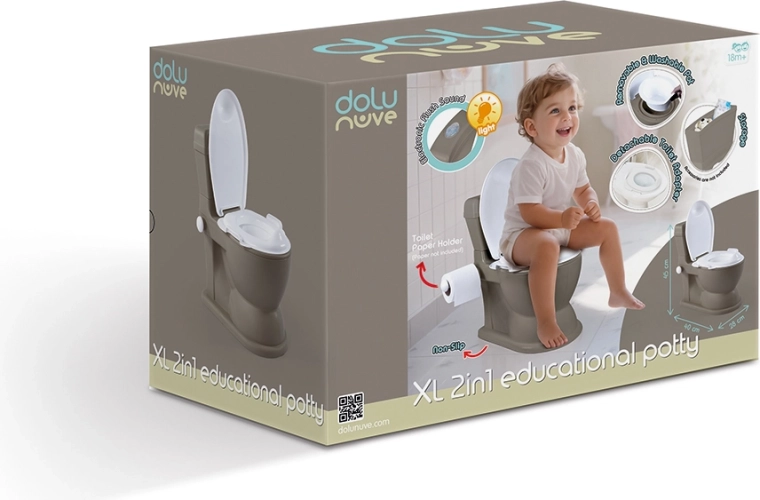Für maximalen Komfort von Eltern und Kindern ist das Töpfchen mit praktischen Details ausgestattet: Die herausnehmbare Innenkammer ermöglicht einfaches Entleeren und gründliche Reinigung, die rutschfeste Basis sorgt für Stabilität und Sicherheit, und der Spülkasten dient als Stauraum für Feuchttücher oder Toilettenpapier. Der abnehmbare WC-Sitz kann zudem als Reduzieraufsatz auf dem normalen WC verwendet werden.