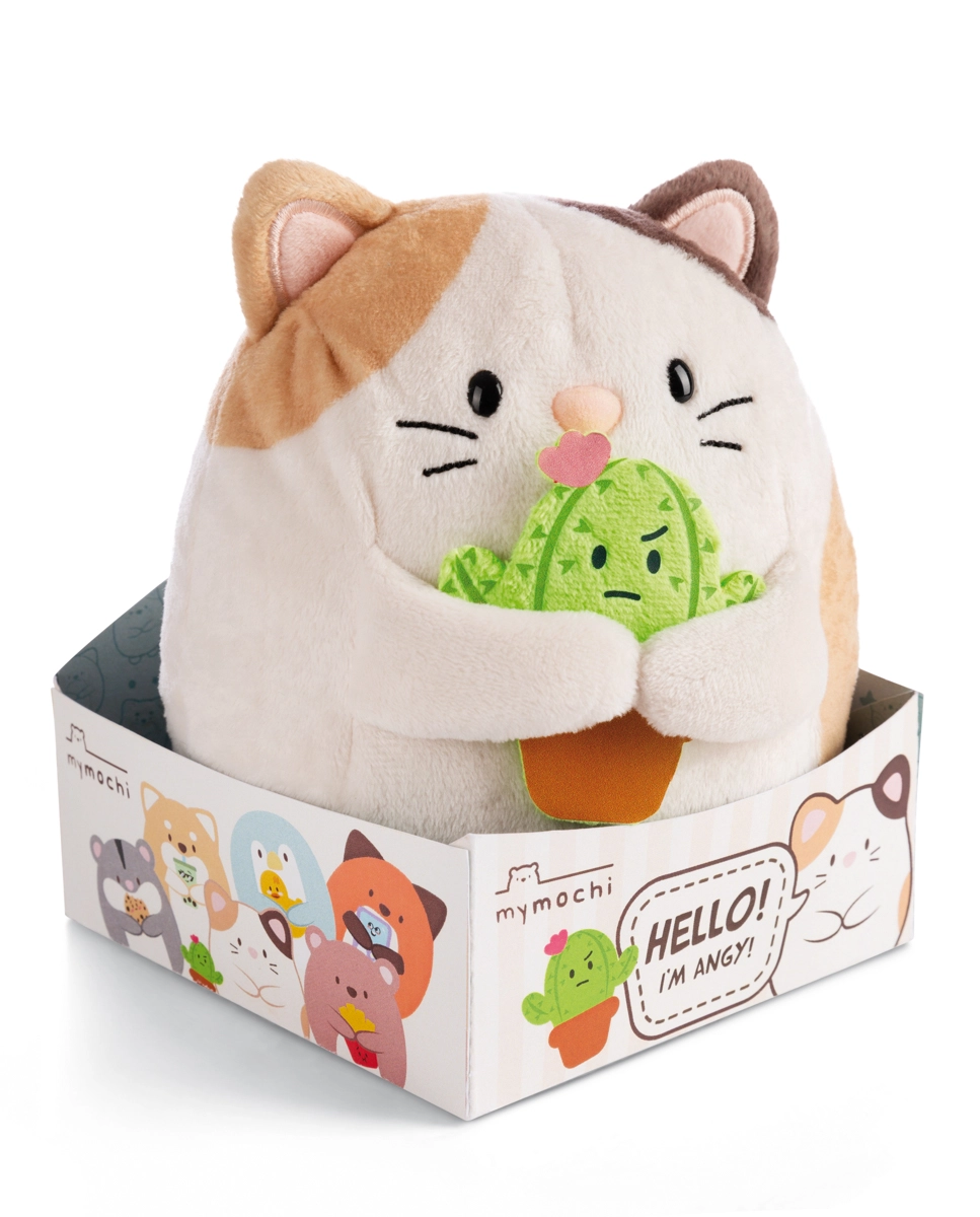 Katze Angy ist eine dreifarbige, 16 cm große Plüschfreundin, die gerne kuschelt und Ihr Kind beim Spielen und Einschlafen begleitet. Dazu gehört der niedliche grüne Kaktus Moodi – zusammen bilden sie ein unzertrennliches Duo zum Schmusen und für fantasievolle Spiele.