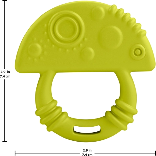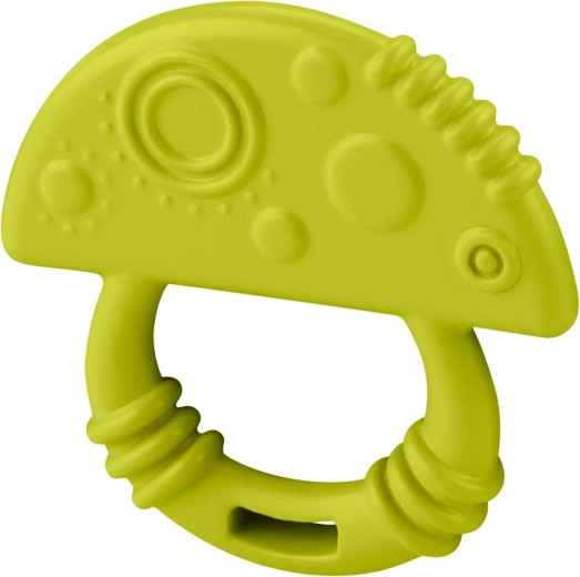 Das Beißspielzeug in Form eines niedlichen Pilzes in grüner Farbe ist für ein bequemes Greifen und natürliches Spiel konzipiert, das die Hand-Auge-Koordination sowie die Feinmotorik fördert. Das weiche und flexible Material ist angenehm zu berühren und sicher für den täglichen Einsatz beim Kauen.