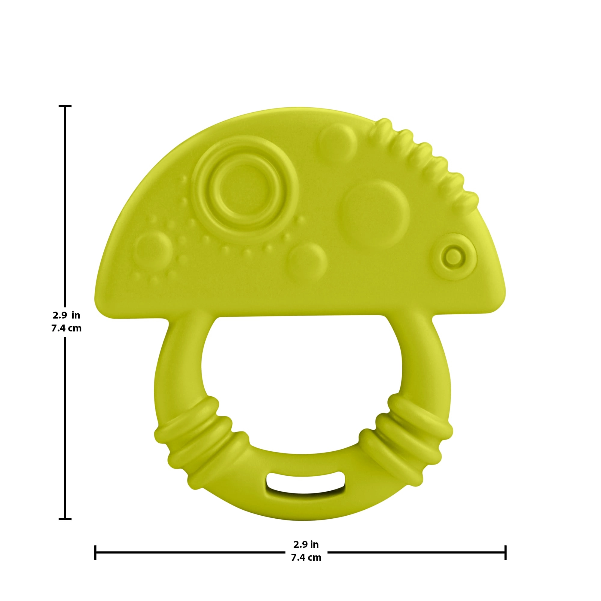 Die texturierte Oberfläche mit vielfältigen Strukturen massiert effektiv das Zahnfleisch und hilft, Unbehagen während des Durchbruchs der ersten Zähnchen zu lindern. Das Beißspielzeug ist leicht, langlebig und lässt sich auch von den Allerkleinsten gut halten.