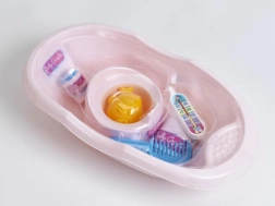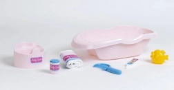 Wir präsentieren die Badewanne mit Zubehör, die 7 Teile nützlicher Hilfsmittel für die Pflege von Puppen enthält. Dieses Set ist ideal, um die kindliche Fantasie und die Fähigkeit zur Fürsorge für andere zu fördern. Kinder können gleichzeitig spielen und lernen.