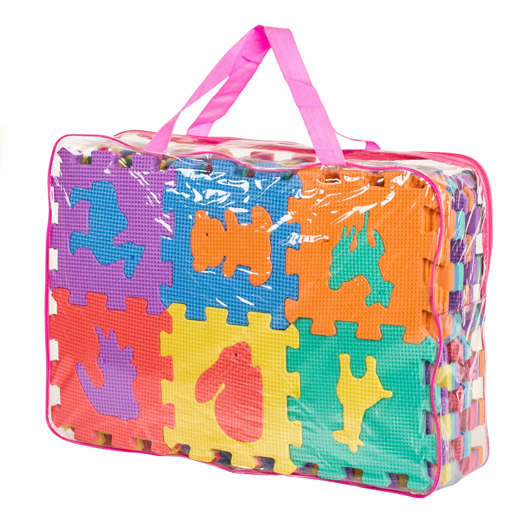 Nach dem Spielen kann das Puzzle wieder ganz einfach in die durchsichtige Tasche gepackt und aufbewahrt oder überallhin mitgenommen werden. Das Puzzle ist wasser- und feuchtigkeitsresistent, sodass es auch im Freien gelagert werden kann. Es hat außerdem hervorragende thermoisolierende Eigenschaften, sodass das Kind lange und sicher auf dem Boden spielen kann, ohne zu frieren.