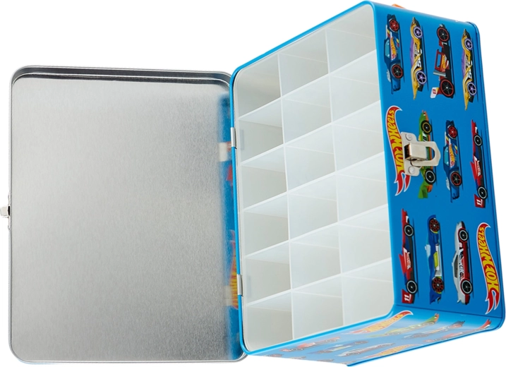 Dieser stylische blaue Koffer mit Rennwagen-Grafik und dem Slogan „Challenge Your Limits“ ist die perfekte Lösung für kleine Sammler. Im Inneren befindet sich ein herausnehmbares Gitter mit 18 separaten Fächern, das die Autos übersichtlich trennt und schützt. Die robuste Metallkonstruktion und der zuverlässige Schnallenverschluss gewährleisten eine sichere Aufbewahrung beim Transport.