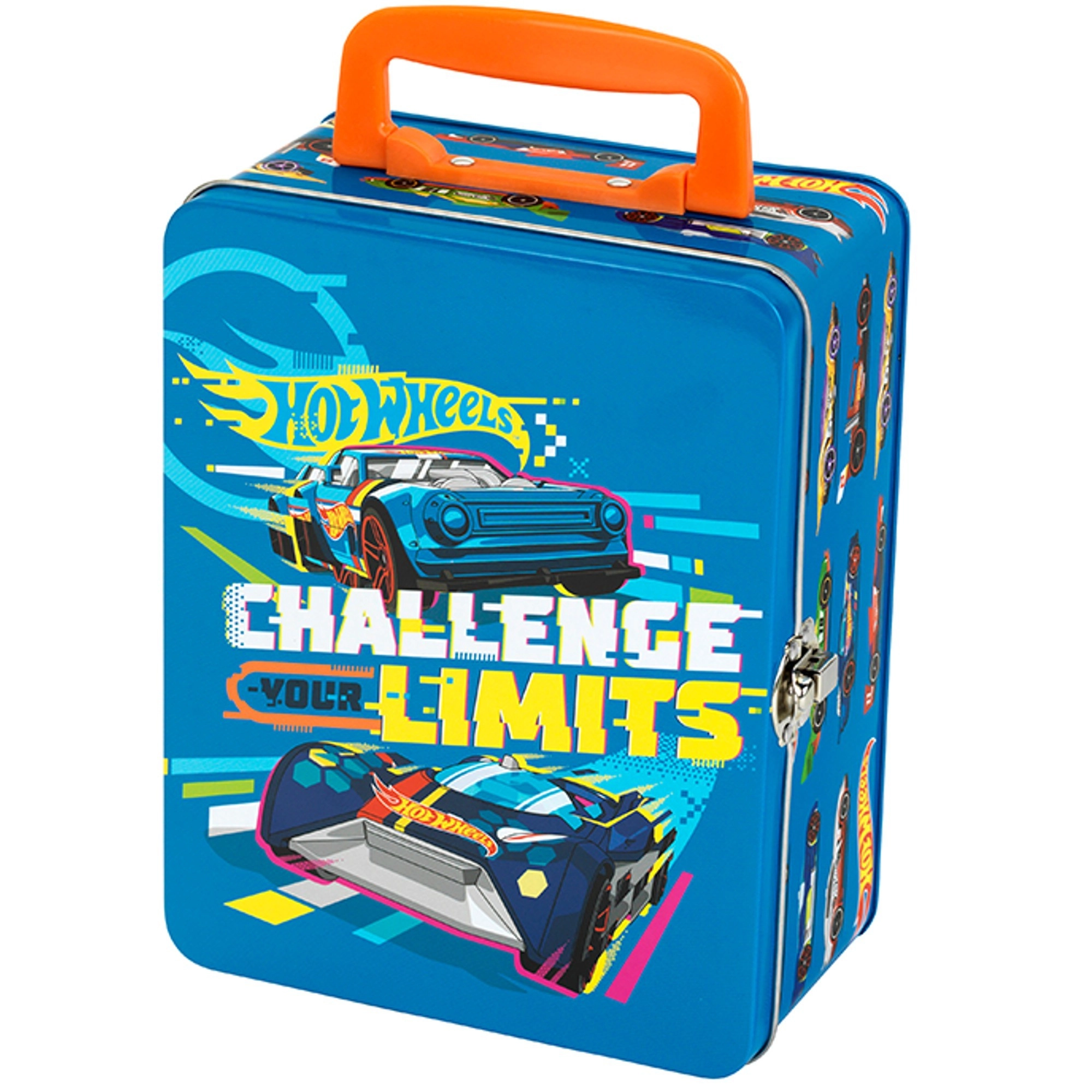 Dank der kompakten Maße von 21 × 15,5 × 8,5 cm passt der Koffer leicht in den Rucksack und ist ideal für Kinderhände. Der orangefarbene Griff sorgt für bequemes Tragen und die markanten HOT WHEELS-Motive begeistern jeden Fan schneller Räder. Hergestellt aus hochwertigen Materialien für Langlebigkeit und den täglichen Gebrauch.