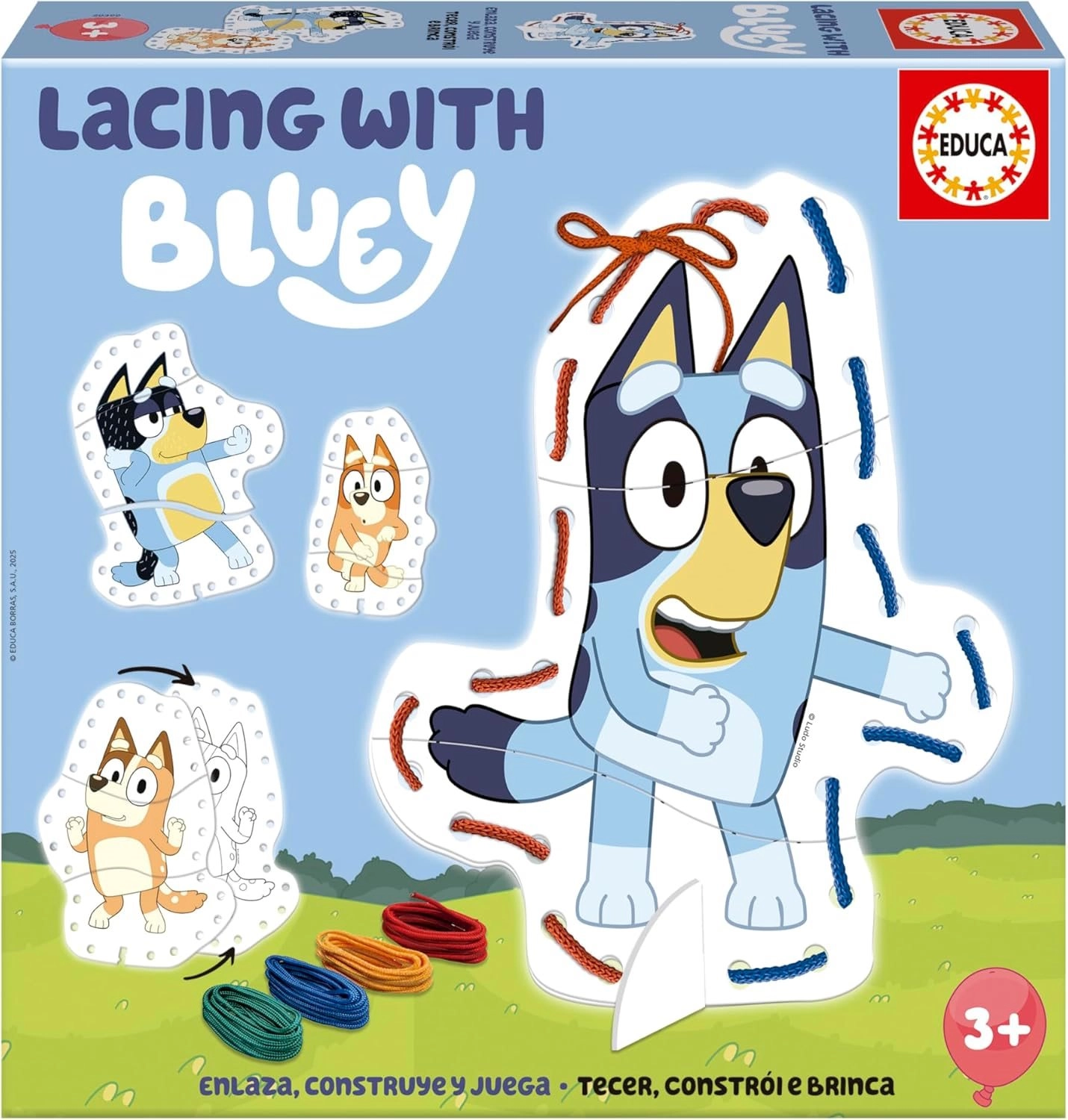 Das EDUCA-Schnürspiel mit dem beliebten BLUEY-Motiv ist die ideale Aktivität für kleine Bastler. Aus 4 stabilen Kartonfiguren und bunten Schnüren setzen Kinder Schritt für Schritt ihre Figuren zusammen und trainieren dabei Feinmotorik, Hand-Auge-Koordination und Konzentration. Große Teile liegen gut in kleinen Händen und erleichtern die Handhabung.