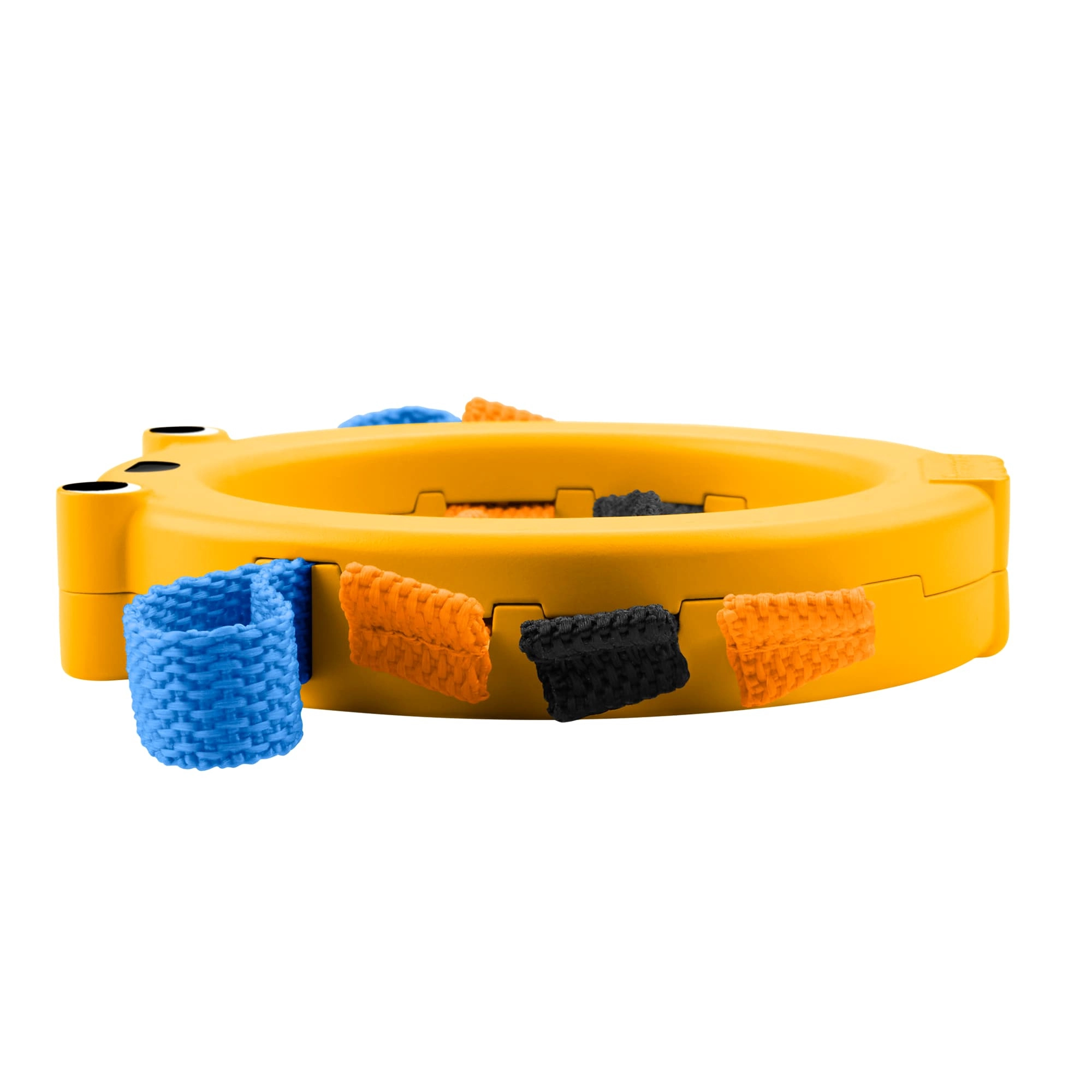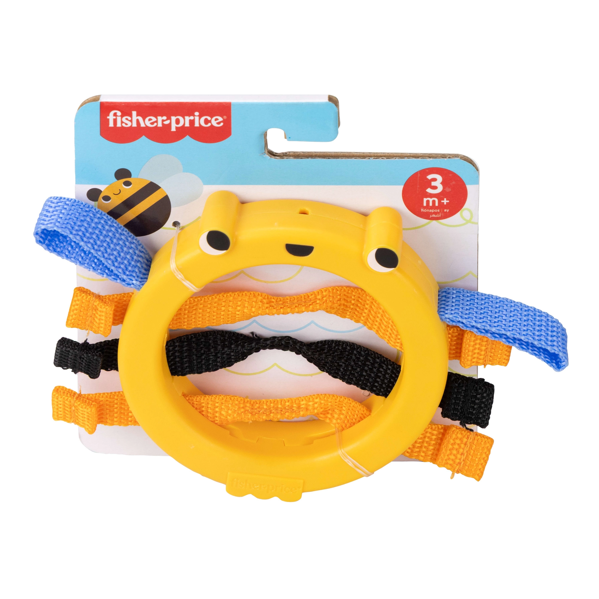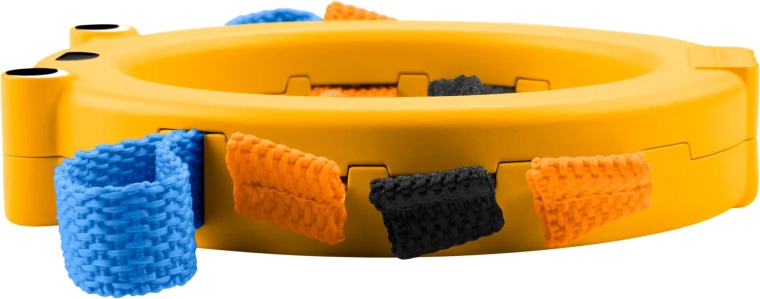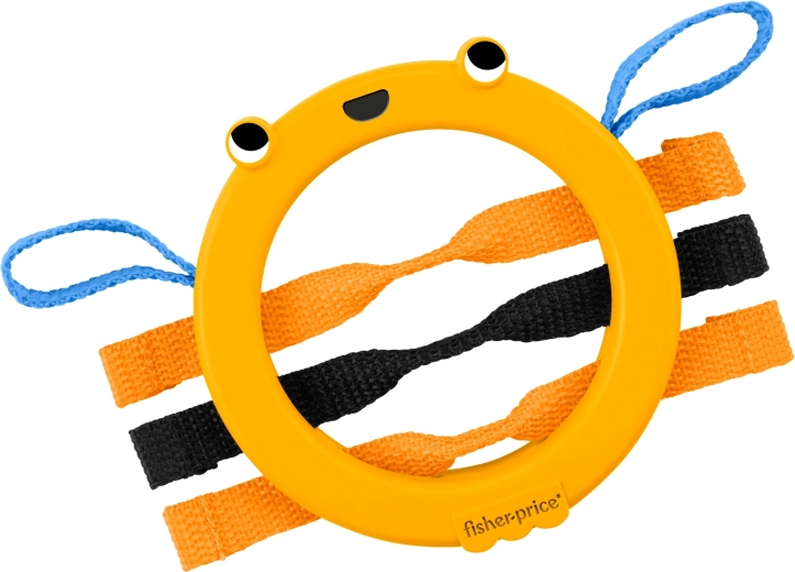 Der leichte Kunststoffring mit freundlichem Motiv und weichen Schlaufen ermutigt das Kind zum selbstständigen Halten, Schütteln und Greifen.