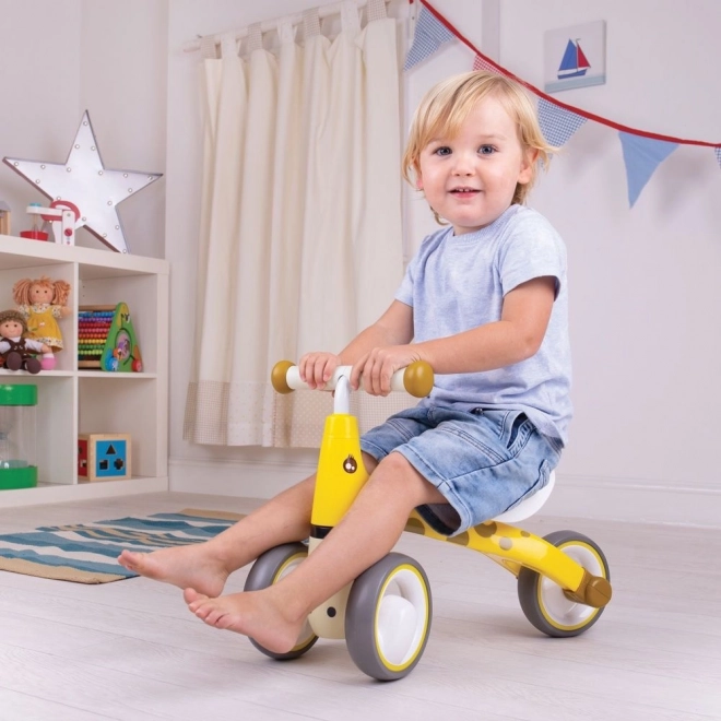 Vier breite Räder sorgen für hervorragende Stabilität und eine ruhige Fahrt – ideal für die ersten Schritte auf dem Rutschfahrzeug.